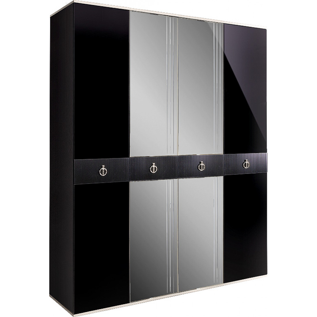 Четырехстворчатый шкаф для одежды с зеркалом Rimini Solo РМШ1/4 (s) (черный)