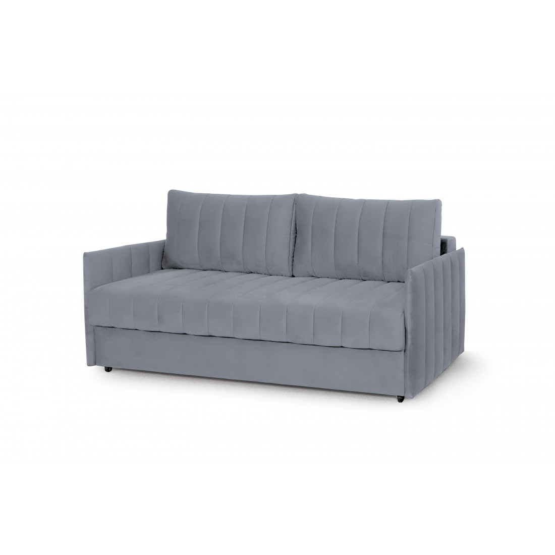 Подушки, сиденье и подлокотники дивана оформлены модной вертикальной стёжкой в современном стиле.