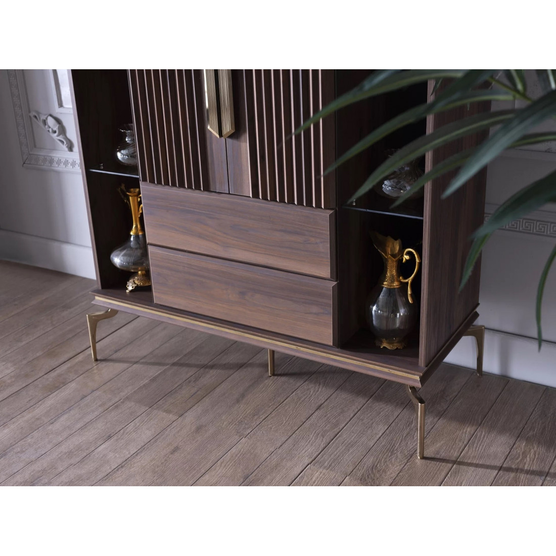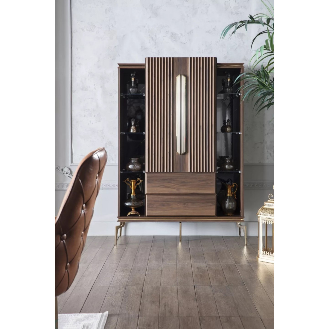 Двухдверный шкаф для посуды "Монтего" выполнен в современном стиле и украсит собой любую гостиную или столовую. В дополнение к современному стилю, цветовая палитра столовой "Монтего" представлена в ореховом цвете. Наш новый продукт выделяется своим особым дизайном, а также своими функциональными особенностями.