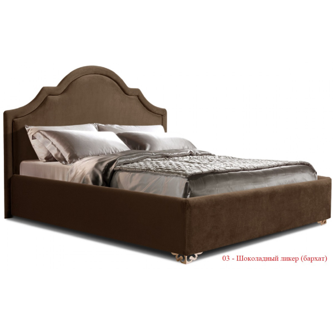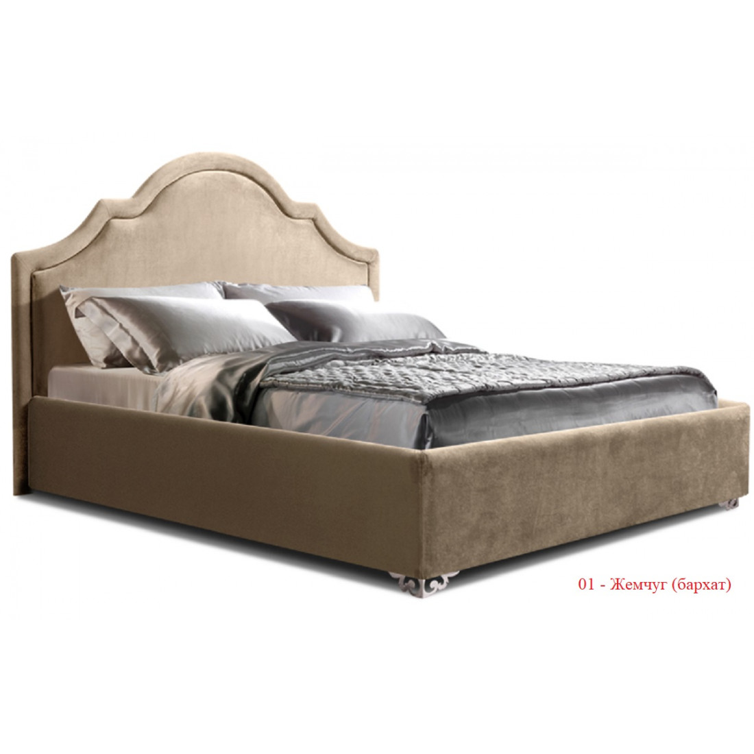 Бархатная ткань очень удачно смотрится на этой модели, придает ей особый лоск и шарм. Данная модель имеет классическое, высокое изголовье (1370 мм) с объемным, декоративным бортиком. Чехол на царги поставляется уже в сшитом и готовом виде. Его достаточно одеть и закрепить на липких лентах. Сами царги мягкие.Кровать «Queen» будет прекрасно смотреться в классическом интерьере, удачно сочетаться с отдельными предметами мебели, благодаря симметричным и плавным линиям в изголовье, «благородному» бархату, который используется для обивки кровати, золотым или серебряным металлическим ножкам, которые отсылают нас к эпохе торжества стиля барокко.