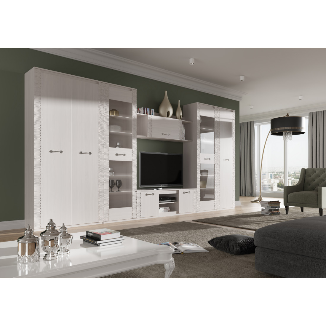 В коллекции Элана есть модули для гостиной, спальни и прихожей.
