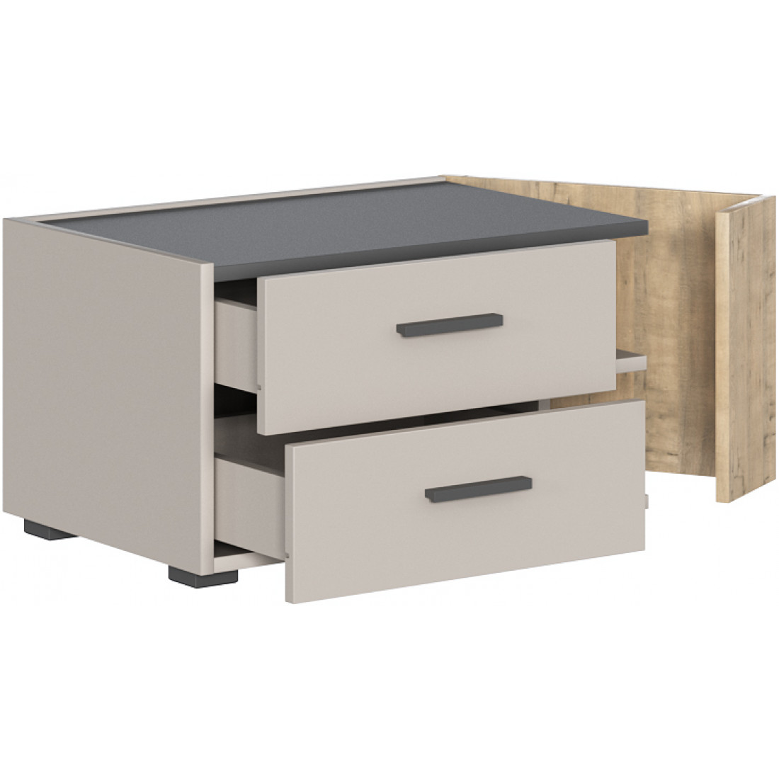 • Тумба с 2-мя выдвижными ящиками и распашным угловым фасадом;