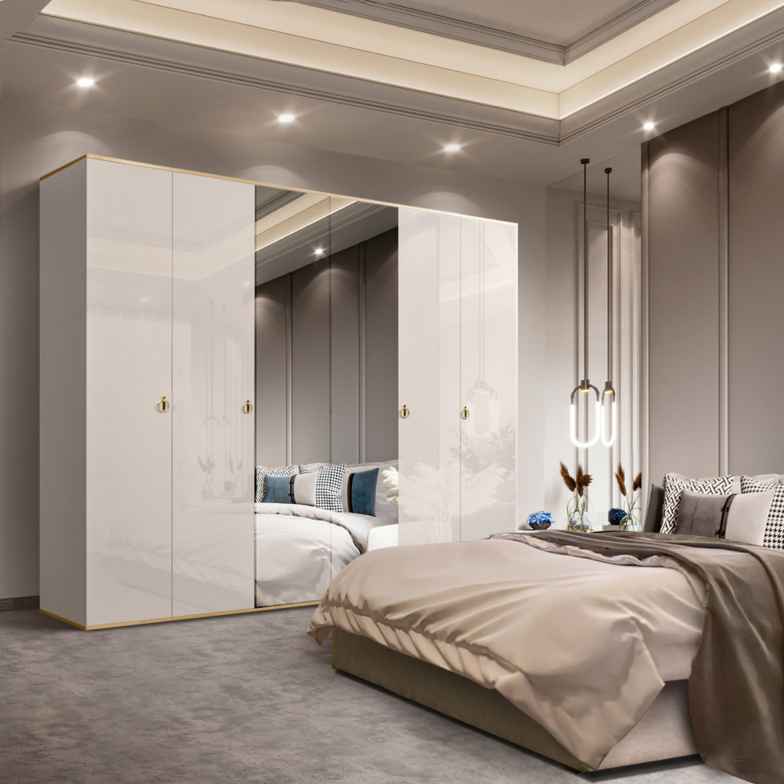 Четырехстворчатый шкаф для одежды с зеркалом Rimini РМШ1/4 (слоновая кость)