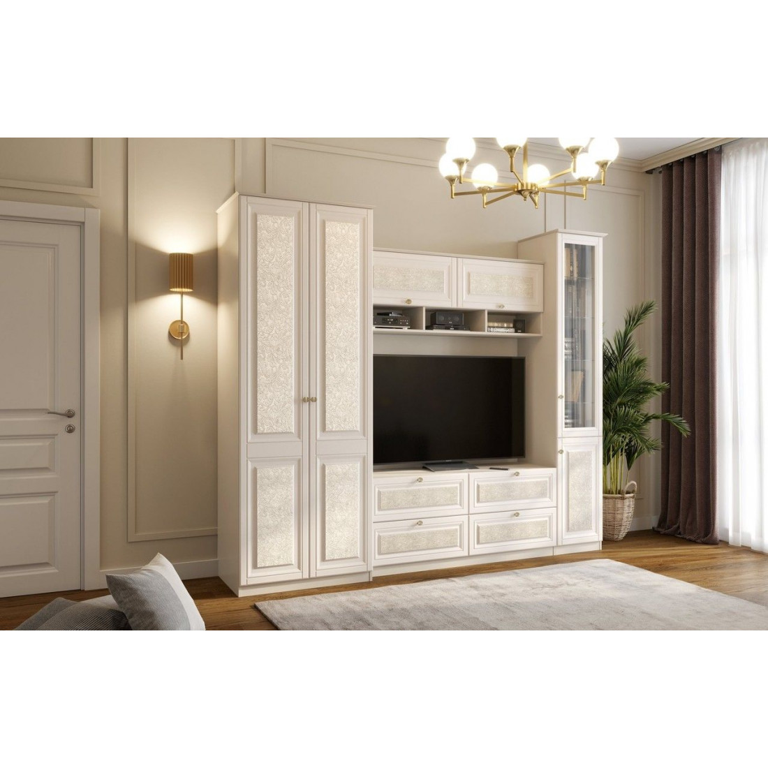 Романтичный и спокойный внешний вид каждого элемента гостиной Каир поможет сделать ваше жилое пространство по-настоящему уютным и изысканным. Ваша гостиная будет выглядеть светло и уютно, просторно будет даже при небольшой площади.