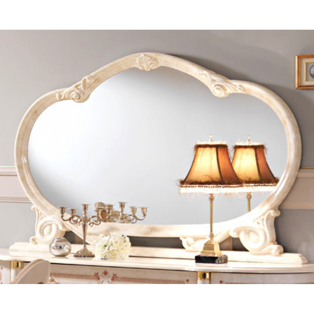 Зеркало для комода Роза (беж) от Российской фабрики «ДИА мебель», выполнено в элегантном бежевом цвете. Зеркало имеет красивую и нестандартную форму и будет отличным дополнением к комоду любой ширины.