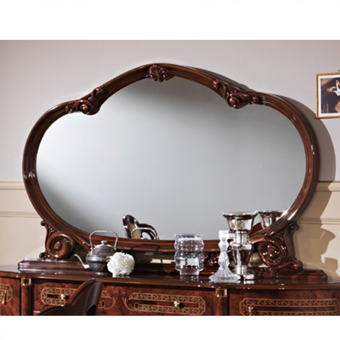 Зеркало для комода Роза (орех) от Российской фабрики «ДИА мебель», выполнено в элегантном цвете орех. Зеркало имеет красивую и нестандартную форму и будет отличным дополнением к комоду любой ширины.